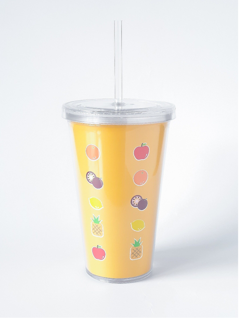 手搖飲系列雙層吸管冷水杯 500ml - 綜合水果茶