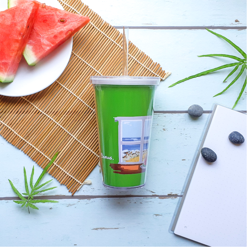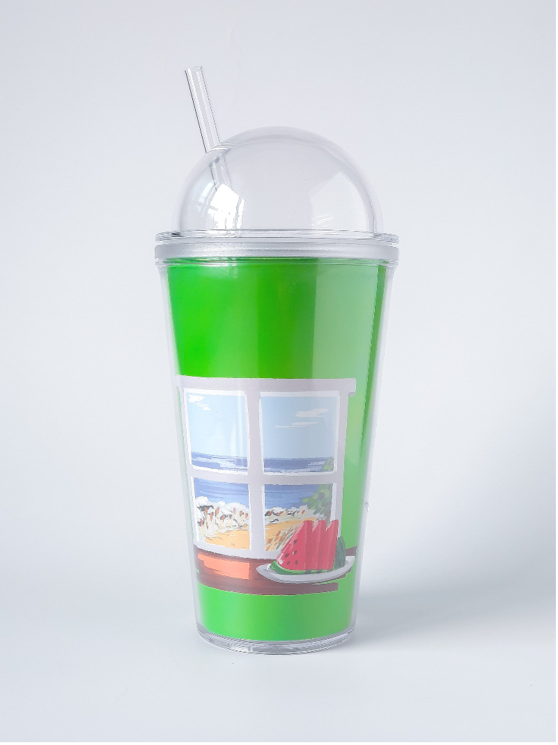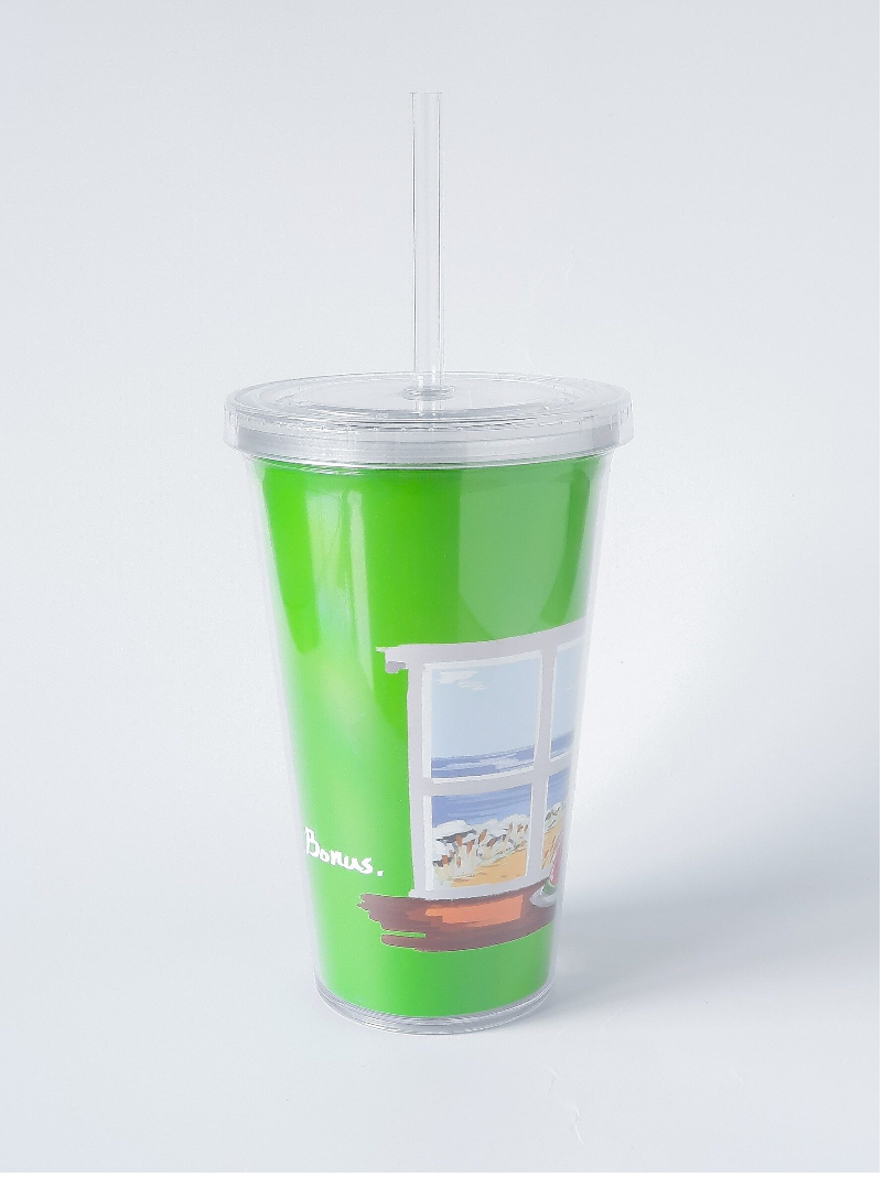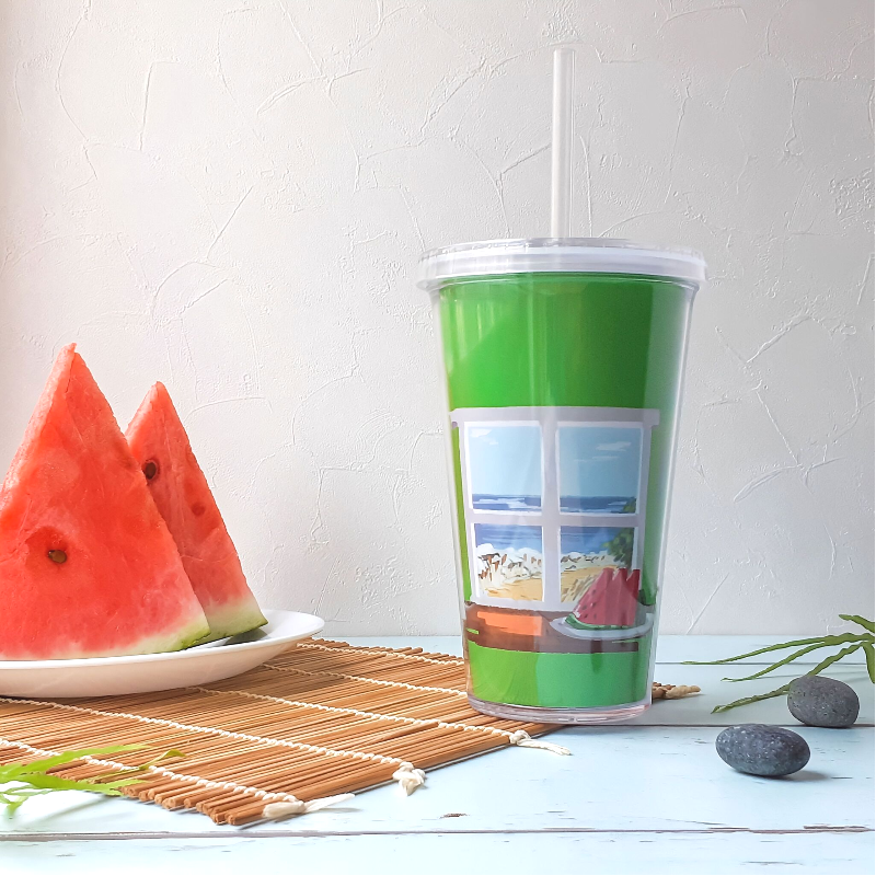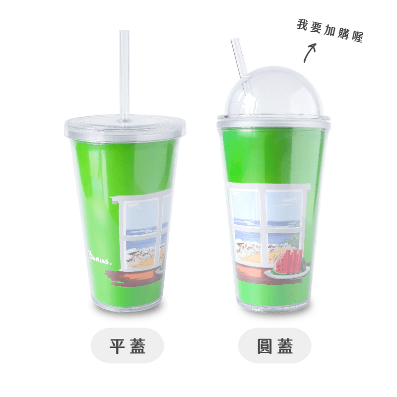 夏日系列雙層吸管冷水杯 500ml - 夏日的午後