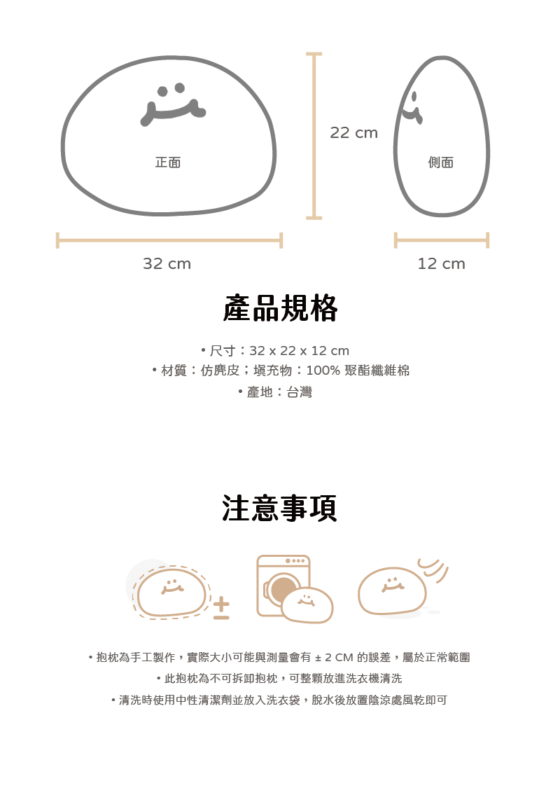 .抱枕為手工製作,實際大小可能與測量有 ± 2cm 的誤差,屬於正常範圍