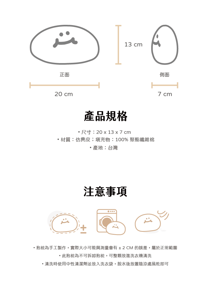 .抱枕為手工製作,實際大小可能與測量有 ± 2cm 的誤差,屬於正常範圍
