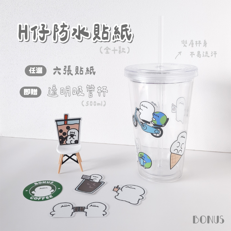 購買兩組(共六張)貼紙 即贈 透明吸管杯🥤