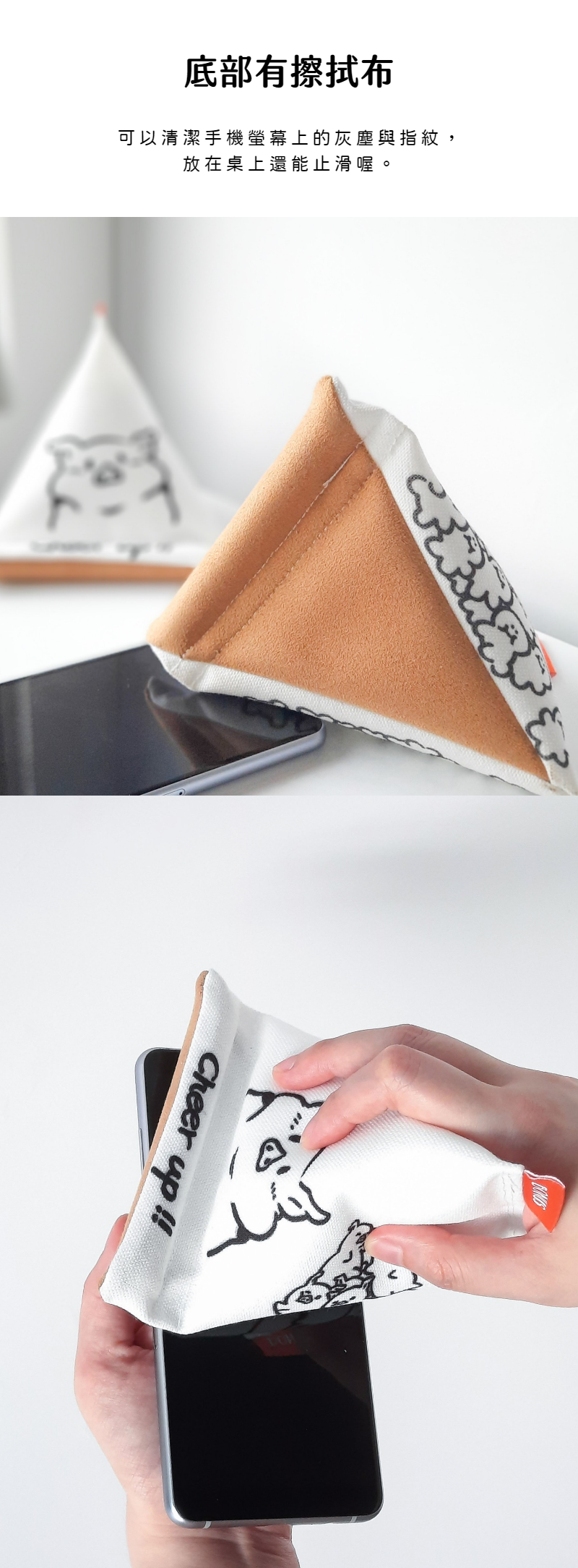 .底部擦拭布可以清潔手機螢幕上的灰塵與指紋,放在桌上還能止滑